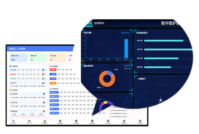 展示病區(qū)整體數(shù)據(jù),方便醫(yī)護人員快速掌握病區(qū)動態(tài)。