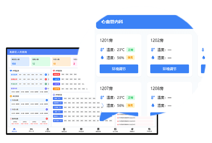 監(jiān)測病房溫度、濕度,顯示環(huán)境狀態(tài),并可進行環(huán)境調(diào)節(jié),營造舒適就醫(yī)環(huán)境。
