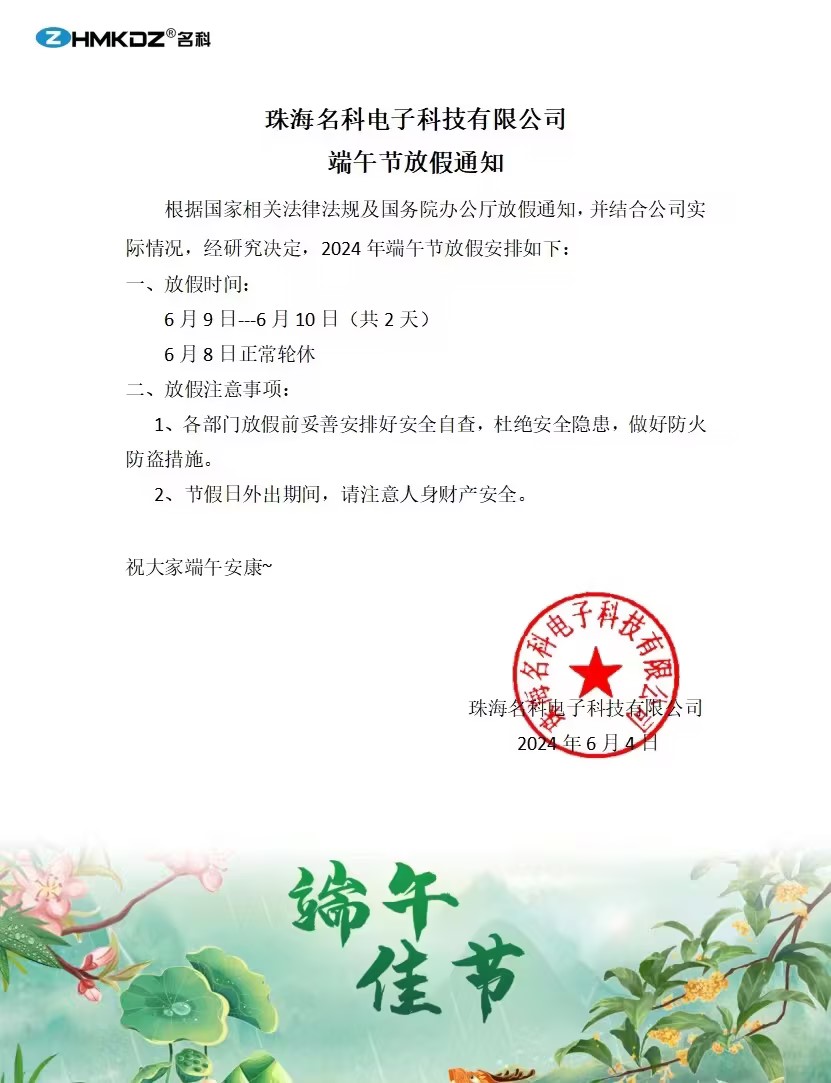 在此,珠海名科電子科技有限公司祝愿全體員工端午節(jié)快樂,家庭幸福,身體健康!