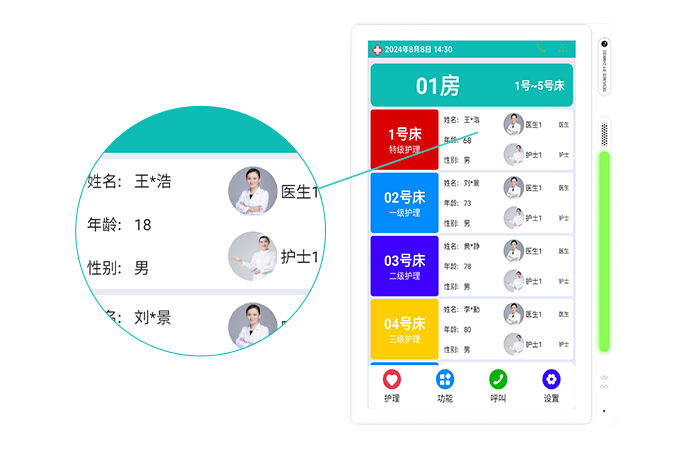 房號(hào)及床號(hào)顯示,一目了然 護(hù)工查房更方便