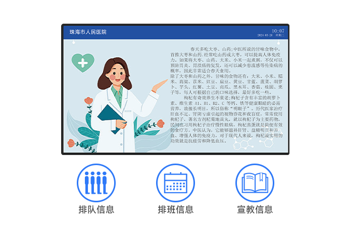 可用于顯示排隊(duì)信息、排班信息、健康宣教信息等